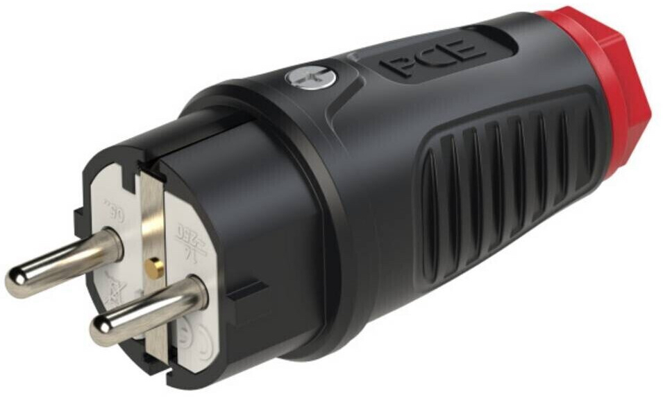PCE Schuko Gummi Stecker Taurus Schwarz/Rot IP54